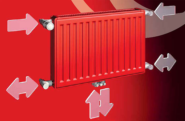 Основанием революционной концепции радиатора T6 является его подключение к системе точно в оси симметрии радиатора. Подключение с левой или правой стороны теряет значение, так как известно заранее, что подключение всегда находится по центру радиатора.