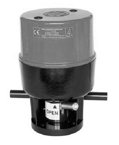 Электрический привод с поворотом на 90° в алюминиевом корпусе. Возможно приведение в действие при помощи аварийного ручного маховика.