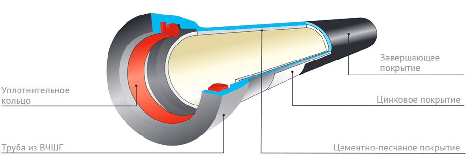 трубы из ВЧШГ с внутренним цементно-песчаным покрытием позволяют резко снизить гидравлические потери на трение в трубопроводе и отвечают всем современным требованиям в области энергосбережения.